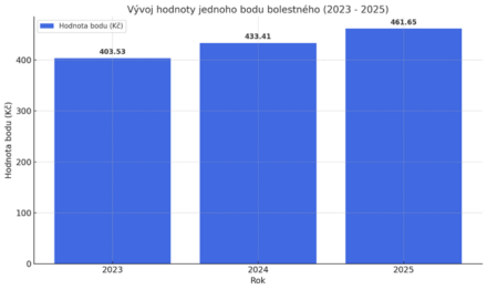 Pro rok 2025 je hodnota jednoho bodu stanovena na částku 461,65 Kč.